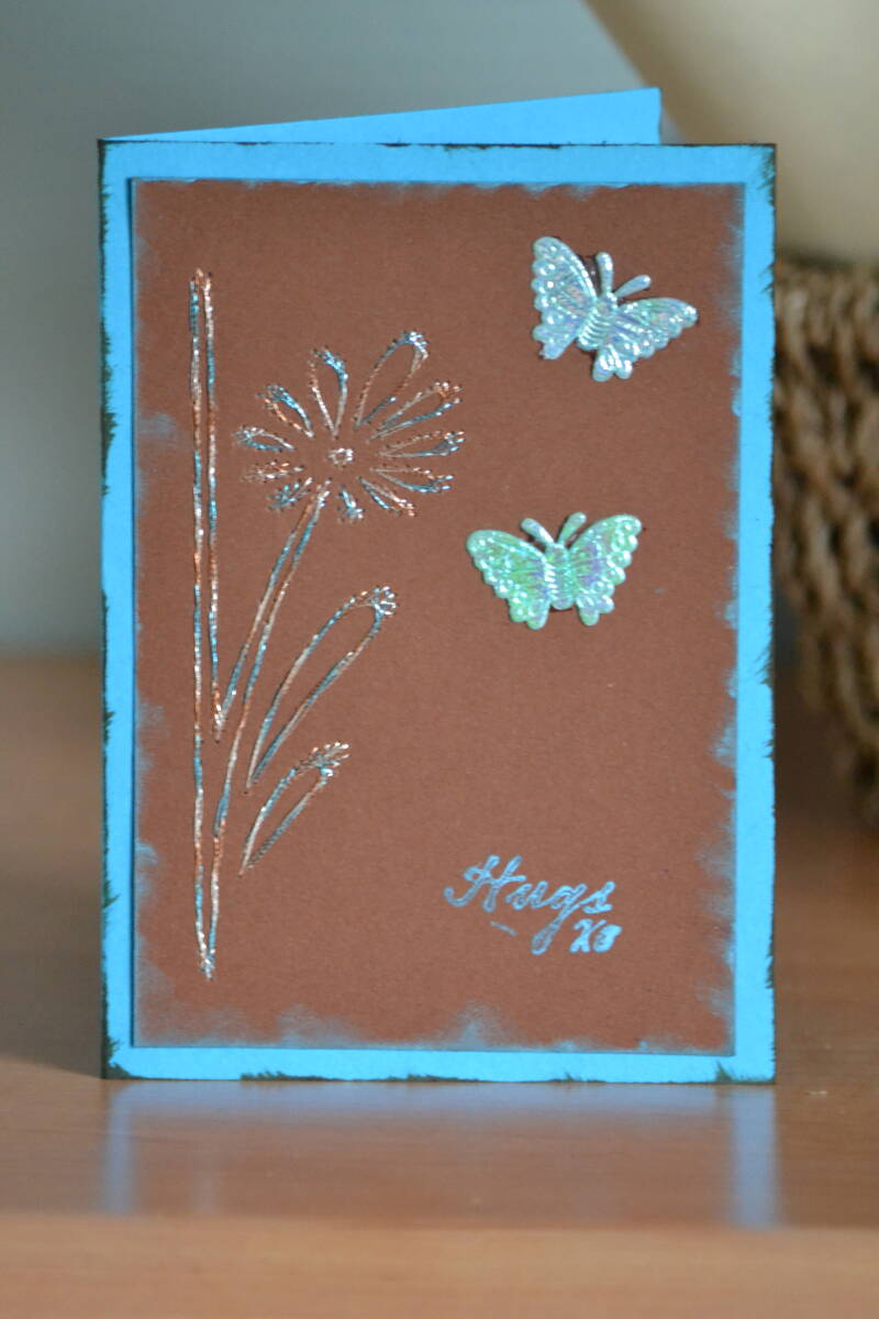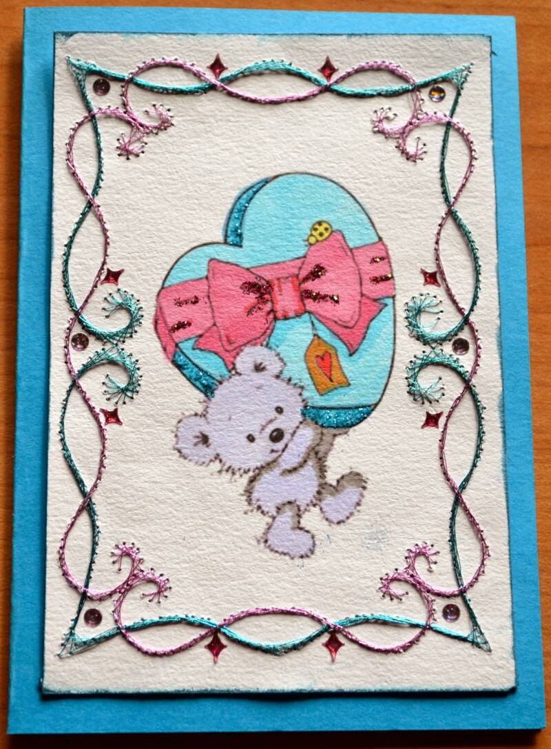 Kaartje gemaakt met achtergrond alcoholische inkten (eerste poging tot), nieuwe stempels van Lavinia en ingekleurd met Perfect Pearls.